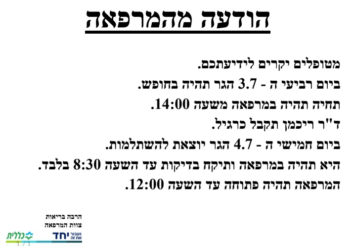הודעה מהמרפאה