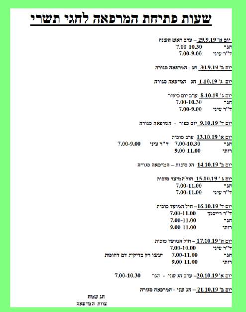 שעות פתיחה בחגי תשרי