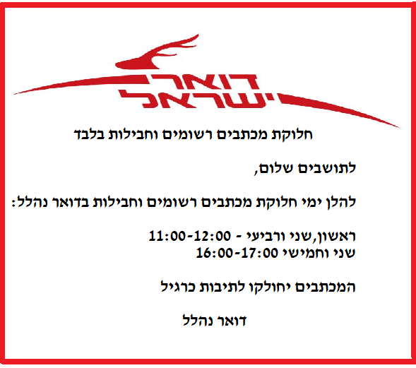 חלוקת מכתבים רשומים וחבילות בדואר נהלל