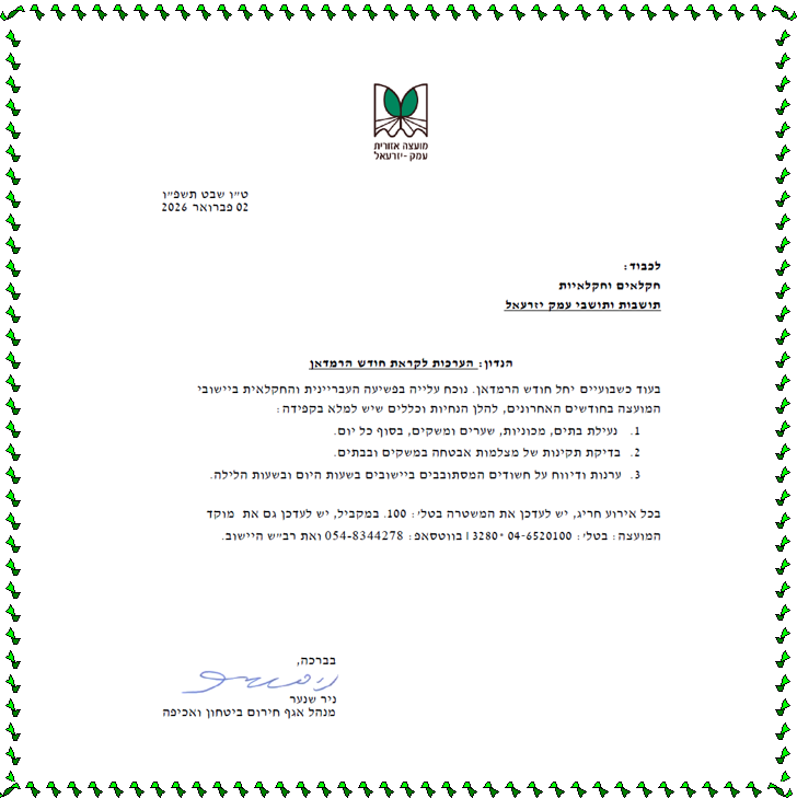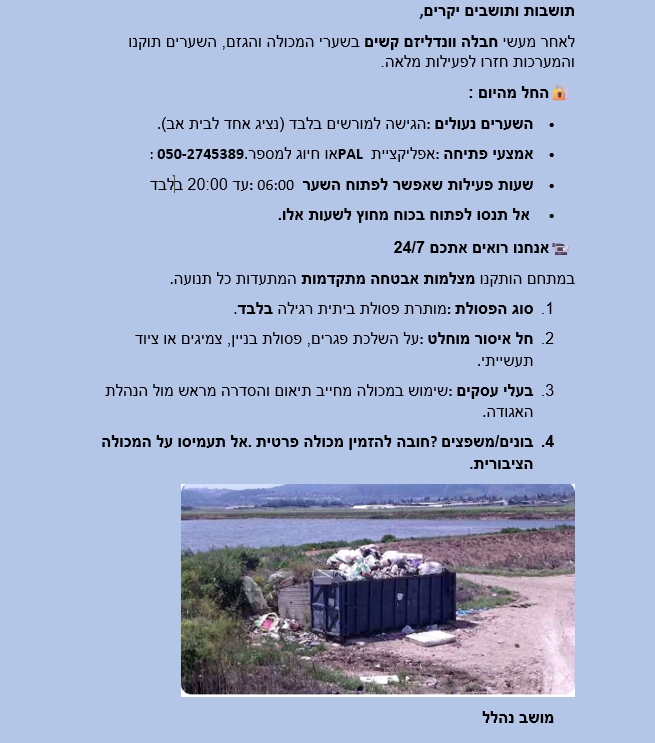 מס' הטלפונים לפתיחת שערים: מרכז מזון וגזם השתנו, להלן המס' החדשים: